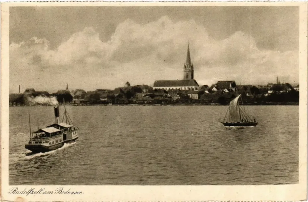 Radolfzell, Germany, on Lake Constance—birthplace of Fred Schmieder in 1922, with a view of the cathedral where he was baptized