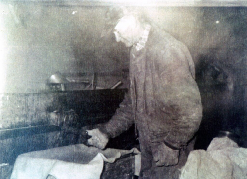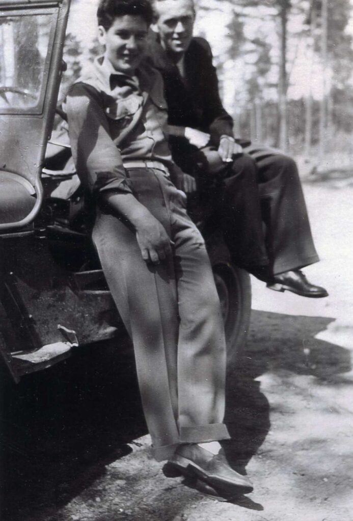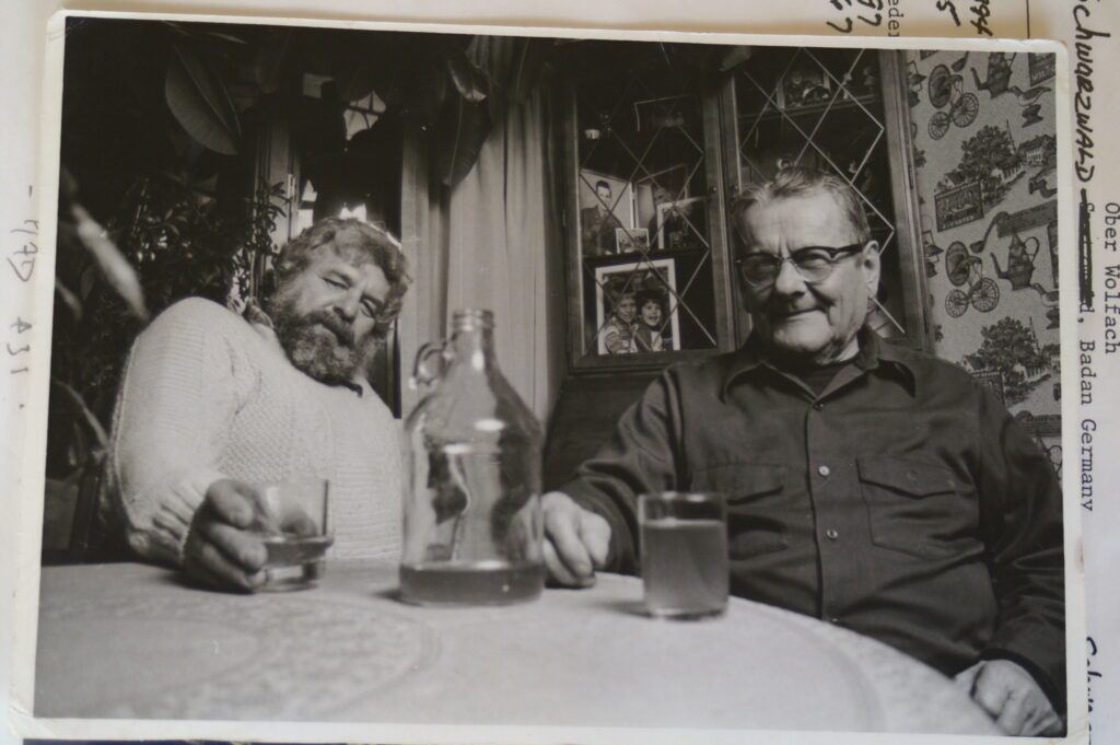 George Schmieder with his father, Georg Schmieder, at the Zipperhof (Schmieder homestead), Reichenbach, circa 1949