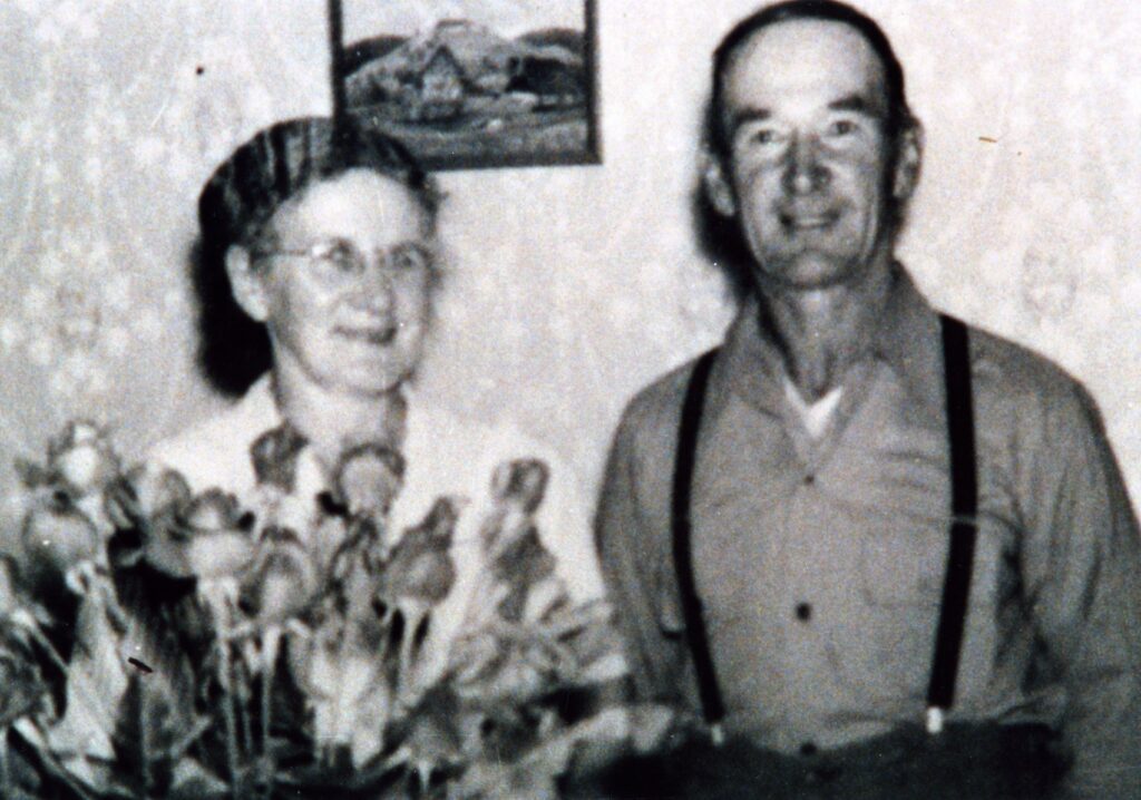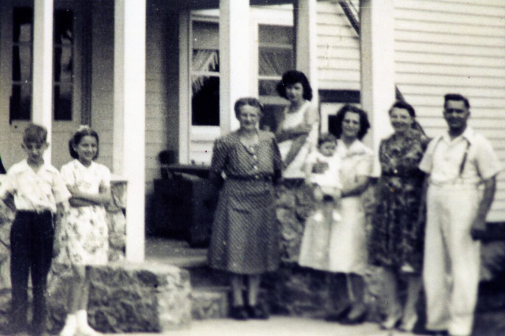 Schmieder family party at the homestead, Alexander, New York, circa mid-1950s. Seated from left to right: August and Therese (Beck) Kautz, George and Rosa (Beck) Schmieder.