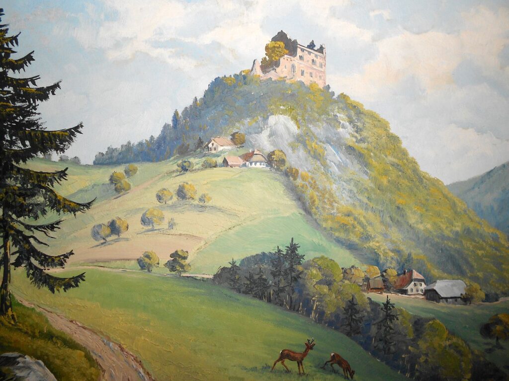 A painting of Hohengeroldseck Castle ruins on Schönberg hill in Germany. Located in the heart of the Black Forest, near the ancestral homes of George Schmieder and Rosa Beck-Schmieder.