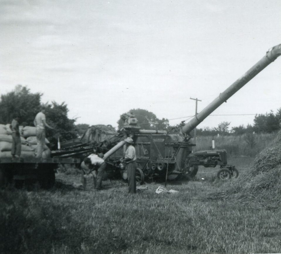 George Schmieder and his sons threshing the grain harvest on the Schmieder farm, Alexander, New York.