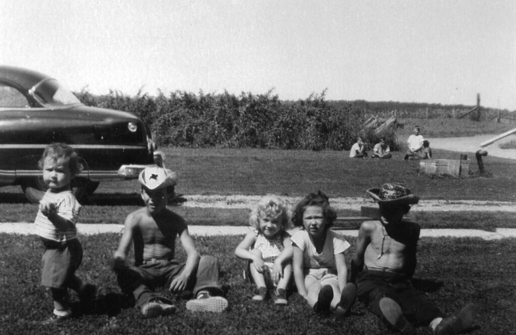 Paul Schmieder (George Schmieder's brother visiting from Germany in 1954) with George's grandchildren - Steven, David, and Michael
