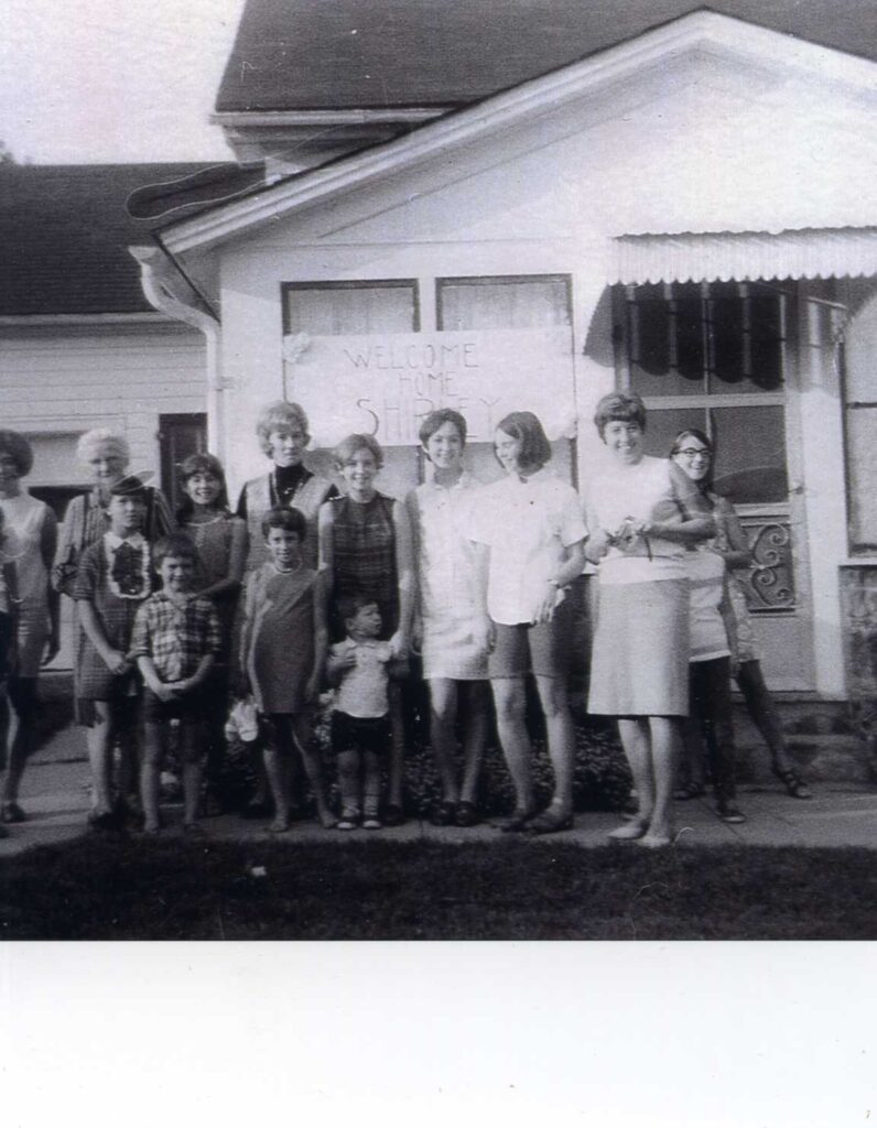 The Schmieder family, in a portrait. Front row (left to right): Erma, Rosa, Shirley, George, and Hilda. Back row (left to right): George, Fred, Herbert, Arnold, and Paul.