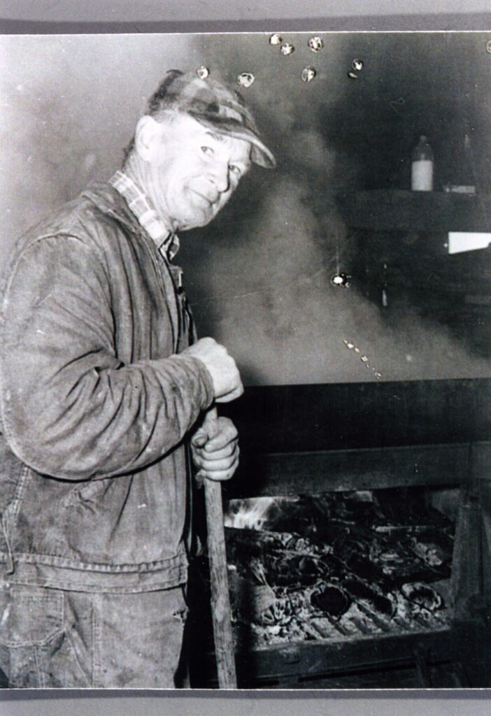 John Mathis, a family friend, entertaining at the Schmieder farm with a ventriloquist’s dummy, circa mid-1930s.