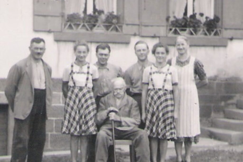 The Schmieder Family in Reichenbach, Germany: Seated is Georg Schmieder (father of George). Standing (from left) are his son Xaver (George’s brother), his grandchildren Christa, Luise, Franz, and Emil, and Xaver’s wife, Maria.