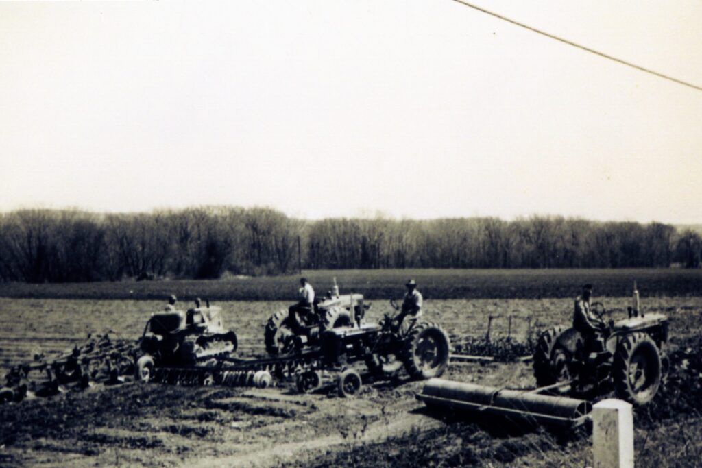 George Schmieder and his sons preparing the ground for spring planting on the Schmieder farm, Alexander, New York.